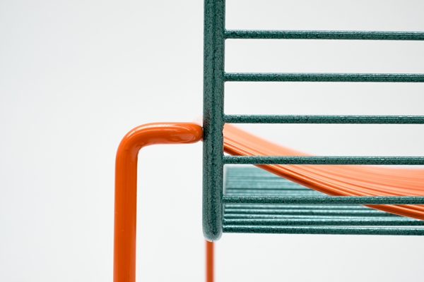 Twee kleuren vermengen zich doordat rasters van draadframe elkaar kruisen. Het effect met verschillende kleuren is wellicht het verrassendst, maar ook wanneer de Wove Chair in een enkele kleur wordt uitgevoerd, blijft een boeiend grafisch spel overeind. De Wove is ontworpen als een gewone stoel, een eetkamerstoel en een fauteuil.