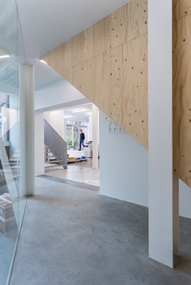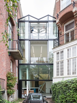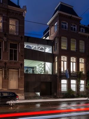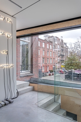 heeft het kantoor van grafisch vormgever Irma Boom in Amsterdam gerenoveerd en ernaast een nieuwe kunstruimte ontworpen. De nieuwbouw bestaat uit drie verdiepingen, die ten opzichte van elkaar telkens een stuk verder van de straat zijn gelegen. Dankzij een combinatie van glas en basalt kon een hoge mate van transparantie worden bereikt.