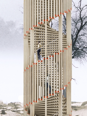 De uitkijktoren wordt gerealiseerd op de Hoge Blekker in Koksijde, de hoogste duin van de Belgische kust. Via een helixvormige trap bereiken bezoekers een platform op twintig meter hoogte. De weg omhoog is omsloten met houten lamellen, waardoor het zicht op de omgeving tijdens de klim gefilterd blijft.