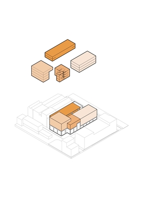 Centraal in het ontwerp staat het verbinden van de ruimtes op de begane grond. Het gaat hierbij om ruimtes voor informeel overleg, zoals een collectief restaurant aan de Kruithuisstraat, een gemeenschapsruimte aan de Hoogte Kadijk, een ‘werklab’ in de Houtmanloods en (bij mooi weer) de tuin tussen deze ruimtes in. De drie bouwdelen en de tuin worden als met een lint bijeengebonden met een doorlopende structuur van betonnen kaders, open of voorzien van glazen puien.