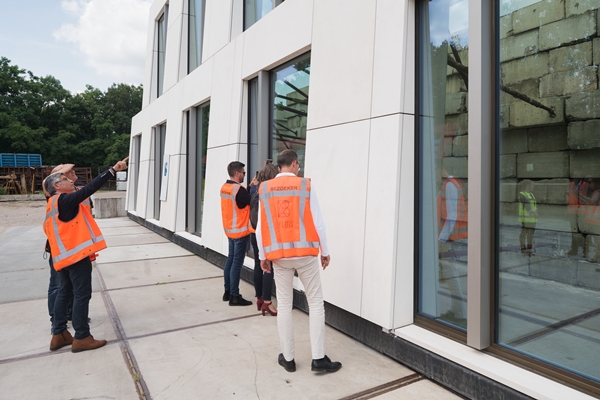 De gevelelementen worden in de fabriek geprefabriceerd, inclusief de stalen profielen, deuren, ruiten en isolatie. Dat levert een aardige tijdwinst op. “De hoofdaannemer ging aanvankelijk uit van een bouwtijd van vijf jaar”, vertelt Dam. “Wij hadden al in het ontwerp geanticipeerd op prefabricatie. Met de prefab elementen die we nu inzetten, kunnen we de bouwtijd beperken tot drie jaar.”