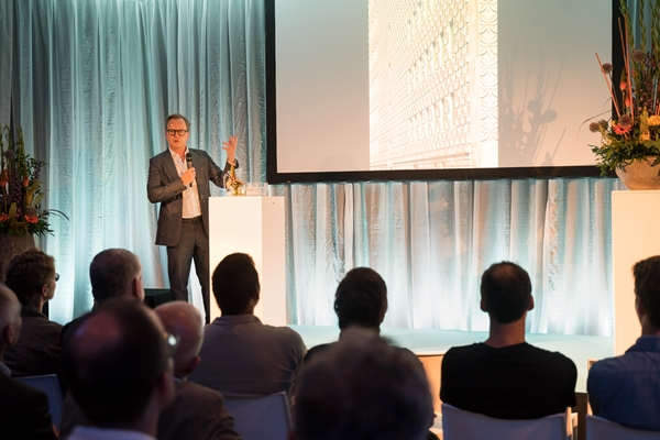Voornaam onderdeel van de inspirerende middag was een presentatie van Diederik Dam over twee hoogbouwprojecten van Dam & Partners Architecten, waarin gebruik wordt gemaakt van prefab elementen. Voordat hij inging op die twee projecten, Zalmhaventoren en Hourglass, schetste hij de ontwikkeling van prefab bouwen in Nederland sinds de Tweede Wereldoorlog. Dat kon hij grotendeels doen aan de hand van projecten waarbij zijn grootvader, professor Gerard Holt, en zijn vader, Cees Dam, betrokken zijn geweest.