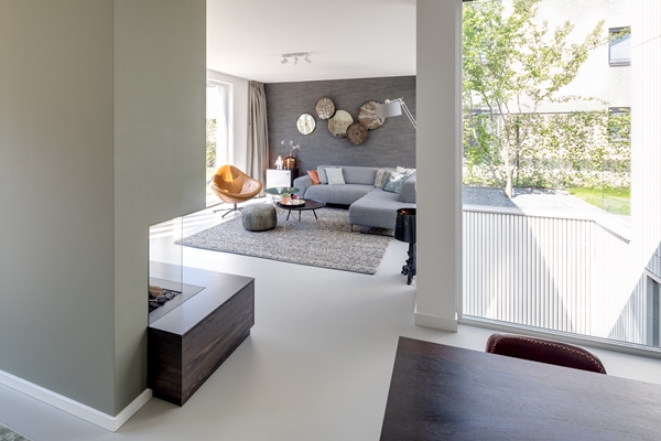 De woningen kennen drie bouwlagen, waarbij ze beide deels zijn onderkelderd. Patio’s zorgen voor ruime lichtinval in de kelder en vormen in ruimtelijke zin de spil van elke woning, leggen de architecten uit.