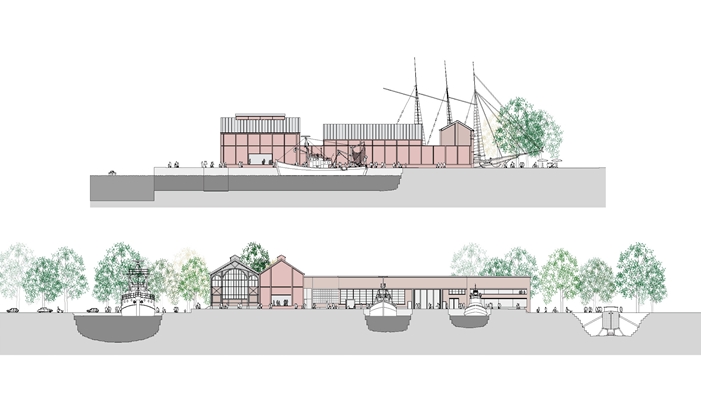 De plek van de voormalige werkplaatsen wordt getransformeerd tot het entreepaviljoen, met een duidelijk gezicht richting het stadscentrum. Dit gebouwdeel gaat plaats bieden aan de permanente en tijdelijke collectie aan schepen. Ook zal de ruimte geschikt zijn voor uiteenlopende publieke evenementen.