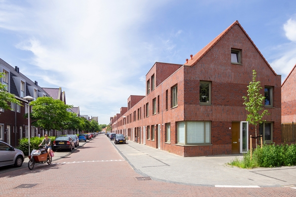 De bebouwing in de straten erachter heeft een kleinere schaal. Daarmee sluit ze aan bij de bestaande bebouwing en het enigszins dorpse karakter van deze straten. De lengte van de blokken heeft LEVS gebroken door hier en daar het metselwerk naar boven, dan wel de pannen van het dak naar beneden door te trekken.