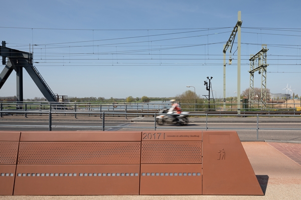 In Zutphen is de Oude IJsselbrug gerenoveerd en uitgebreid met een verbinding voor fietsers en voetgangers. Het nieuwe deel is voorzien van een lange zitbank en een uitkijkplatform dat zicht biedt over de uiterwaarden. Het ontwerp is gemaakt door