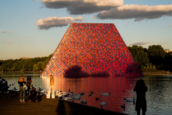 bestaat uit meer dan 7.500 vaten op een drijvend platform van kunststof. Tegelijkertijd vindt in de Serpentine Gallery