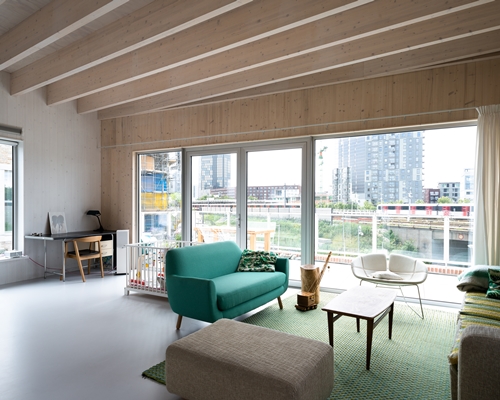 Huis Eén is gerealiseerd op een zelfbouwkavel in Amsterdam-Oost. Het is opgetrokken uit massieve houtbouw, wat bijdraagt aan het sfeervolle en duurzame karakter van het pand, aldus de architecten.