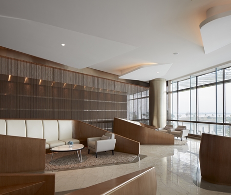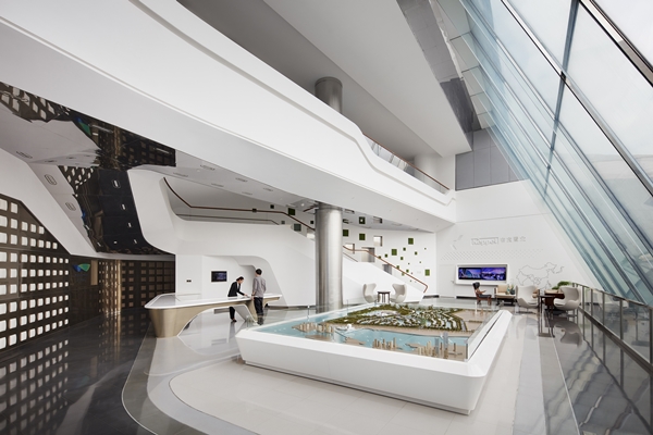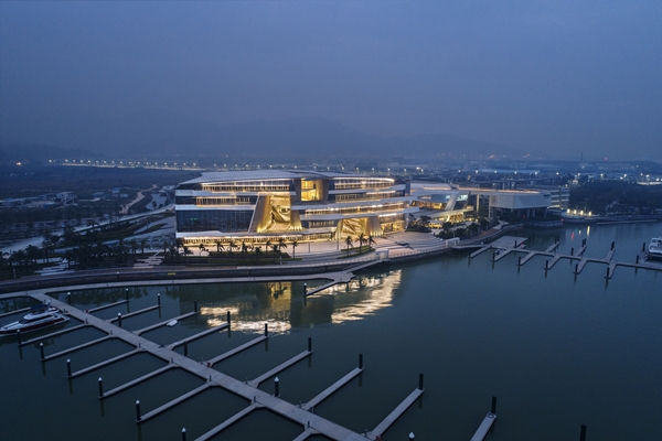 Met het ontwerp van het Clubhouse wil UNStudio Asia de ervaring van een luxe cruise oproepen: een plek van zowel rust en afzondering als actie en vermaak. Het ruimtelijke en architectonische concept is gebaseerd op het creëren van een spanningsboog vanaf de hoofdingang in de richting van het water.