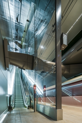 Een zo kort mogelijke route tussen perron en maaiveld maakt het onderhoud en beheer van de stations makkelijk en zorgt voor sociale veiligheid. De open ingangen leiden naar verdeelhallen die je nog steeds ervaart als onderdeel van de buitenwereld, en die tegelijk zicht bieden op de sporen. Zo loopt de publieke ruimte van de stad door tot ver onder de grond.