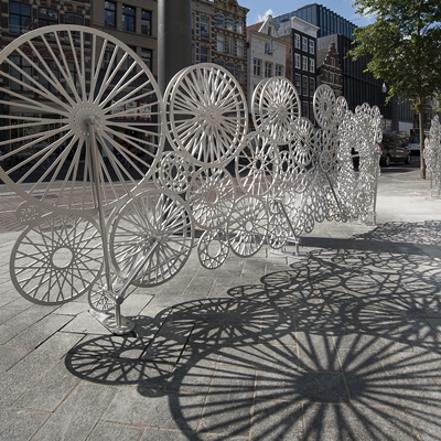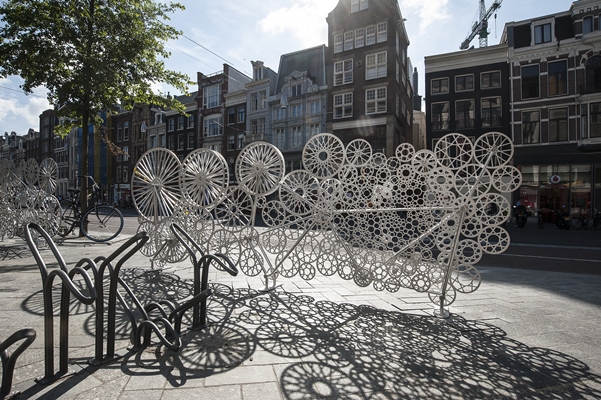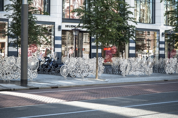 Op die manier wil ontwerper Frank Tjepkema een positieve draai geven aan de meestal als negatief ervaren ‘fietsklont’ in Amsterdam. De hekwerken, die bij elkaar honderd meter lang zijn, zijn via een computergestuurd proces ontworpen en gefabriceerd. Met behulp van slechts één techniek kon zo een verfijnd en zeer gedetailleerd product worden gerealiseerd.