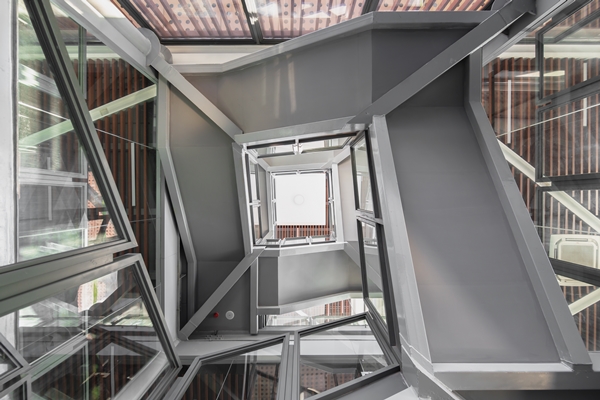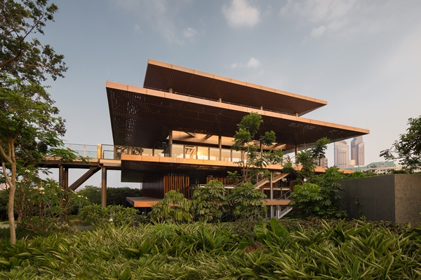 De lamelstructuur op de eerste verdieping gaat een relatie aan met de omringende boomstammen. De hogere verdiepingen liggen tussen het dichte bladerdak en bieden een beslotener, intiemer gevoel. De bovenste verdieping biedt uitzicht op de stad en de omgeving. Als landschapsarchitect was ZEN landscape architects bij het project betrokken.