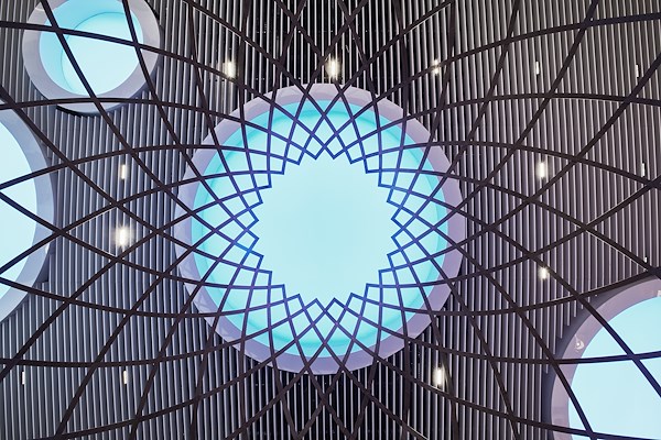 M+R heeft de grote ruimte opgedeeld door middel van een aantal paviljoens in de vorm van gevlochten uivormige koepels. De koepels bieden plek aan zithoeken en de ontvangstbalie.