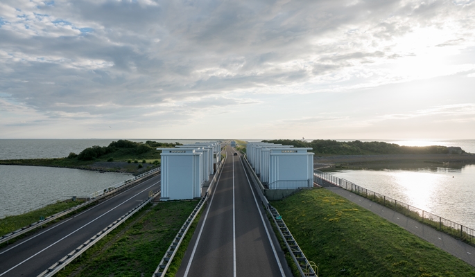 De uitdaging bij het Icoon Afsluitdijk begon al bij de eerste meeting met Rijkswaterstaat. “Daarin kregen we te horen dat de ingreep geen extra onderhoud mocht opleveren en ook geen elektriciteit mocht gebruiken. In de auto terug vroegen we ons hardop af: wat moeten we dán doen? Dan ga je kijken naar wat er al is en ga je onderzoeken of je dat kunt upcyclen.”