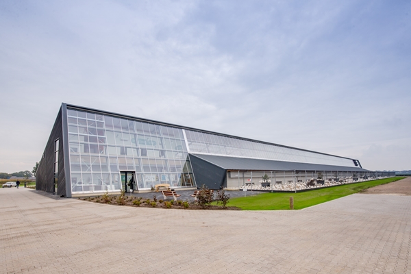 De architectuur van de stal is net zo pragmatisch als zijn indeling. Het dak heeft een flauwe helling op het zuiden, voor de PV-panelen op het dak, en een steile helling op het noorden. Vijftig procent van het dakvlak laat daglicht door, de andere helft is, richting het zuiden, volledig bekleed met PV-panelen. Om de kippen niet te laten schrikken van een overvliegende roofvogel is het flauwe dak trouwens niet transparant maar translucent.