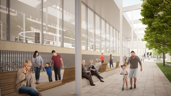 De oude bibliotheek wordt gerenoveerd, met behoud van waardevolle interieurelementen. Van het AC Zuid, zoals het huidige administratief centrum heet, wordt een deel gesloopt en vervangen door een transparant ontvangstpaviljoen met eronder een fietsenstalling voor 1.100 fietsen.