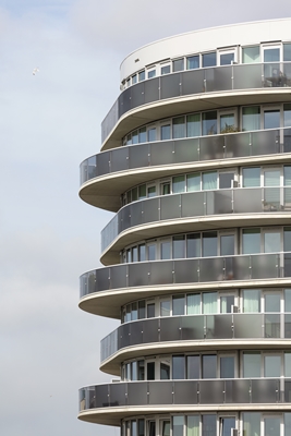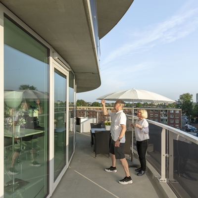 ontworpen torens vallen op door hun ronde vorm en balkons die lijken te ‘tollen’, doordat ze per verdieping een kwartslag zijn gedraaid. Elke woonlaag telt vijf appartementen met een balkon over de volle breedte.