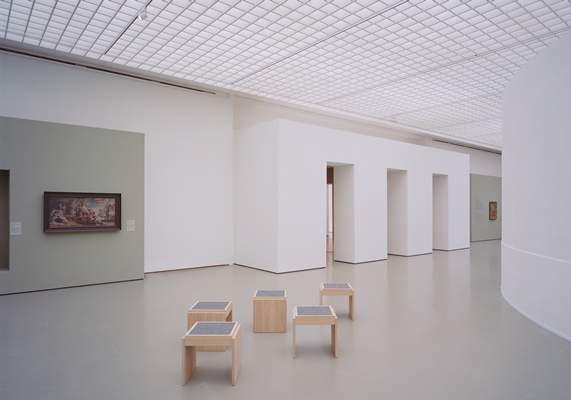 De classicistische taal van deze plattegronden heeft voor De Vries als uitgangspunt gediend bij de inrichting van de tentoonstelling, legt hij uit. De belangrijkste referentie echter, was de Cappella Rucellai uit 1467 van Leon Battista Alberti. Een object in deze ruimte is volledig in verhouding met de wanden, de vloer en het plafond. “Een sublieme, klassieke samenhang die nog altijd uiterst modern is.”