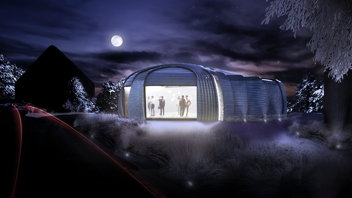 Het pand moet vergaderruimte bieden als nieuwe faciliteit van het hotel De Slaapfabriek in Teuge. Opdrachtgevers zijn Arvid Prigge van Centre4Moods en Marjo Prigge-van der Linden van De Slaapfabriek. Het gebouw wordt ter plekke geprint in beton, laten ze weten.