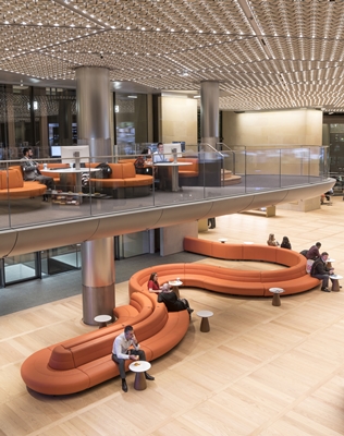 Waar het gebouw aan de buitenkant een relatief teruggehouden karakter heeft, kent het interieur juist een dynamische vormgeving met in het oog springende onderdelen als de spiraalsgewijs door de ruimte lopende trappen. In plaats van een gebouwkern te realiseren, is ervoor gekozen om de daartoe behorende functies naar de randen te verplaatsen. Zo vormen mensen letterlijk de kern van het gebouw, aldus het Royal Institute of British Architects (RIBA).