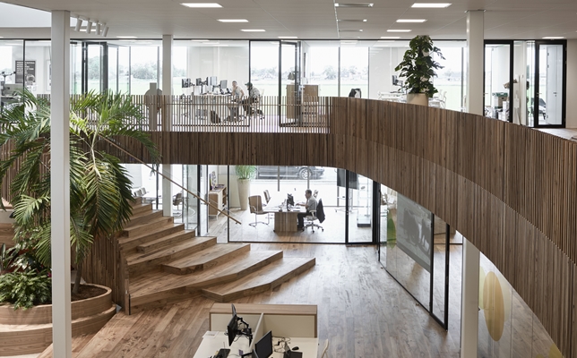 Eosta, distributeur van biologische groente en fruit, heeft in september zijn intrek genomen in een nieuw gebouw te Waddinxveen. Het pand, naar ontwerp van RAU, is in hoge mate circulair gerealiseerd. Voor het interieur stelde Volkert Engelsman, directeur van Eosta, alle vertrouwen in
