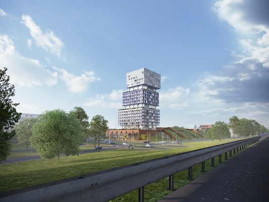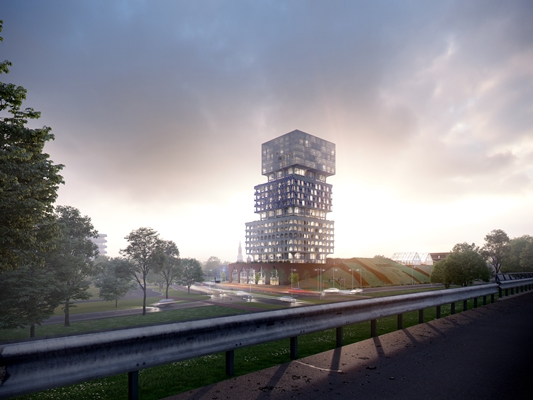 . Blikvanger van het plan is een zeventig meter hoge woontoren.