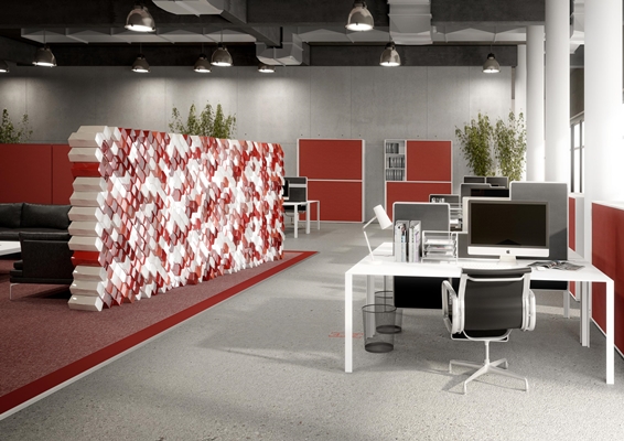 Voorts waren er tal van scheidingssystemen te zien, zoals de eerder genoemd Paravan. Een eenpersoons concentratiewerkplek wordt gecreëerd met de Cellular van Brunner, bestaande uit geluidabsorberende paneelwanden. De Vorm toonde de uitgewerkte ontwerpen van de AK-serie scheidingswanden voor naast en op het bureau, vervaardigd uit PET-vilt. Met Rausonic biedt Rehau driedimensionale wanden, die naar eigen inzicht kunnen worden opgebouwd uit akoestische bouwstenen in verschillende, onderling afgestemde kleuren. Ook Buzzispace biedt de vrijheid om naar eigen wens een geluiddempende wand te creëren; BuzziMood bestaat uit gestoffeerde panelen en panelen met mos, wat meteen enig groen in de kantooromgeving brengt.