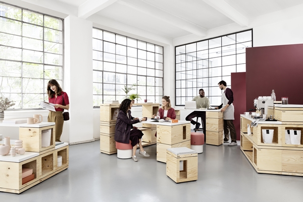 Het inrichtingsconcept PIXEL van Bene is gebaseerd op grenen kubussen, die snel en flexibel kunnen worden verplaatst om een breed palet aan meubels te vormen. Het programma, vorig jaar geïntroduceerd, is uitgebreid met nieuwe producten, zoals de PIXEL Pod, PIXEL Tray opbergruimte, de energievoorziening PIXEL Power Box en de PIXEL Wheel waarmee de elementen van de PIXEL Tower zijn te verrijden. Steelcase introduceerde de Share It-collectie, bestaande uit bureaus en multifunctionele opbergmeubelen, die zich voor verschillende situaties op verschillende wijze laten combineren.