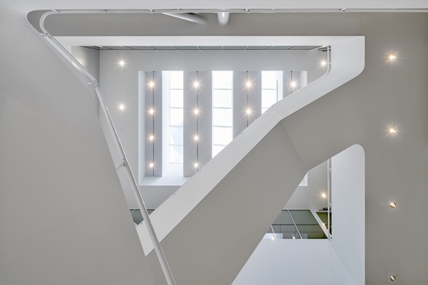 ontworpen vanuit de filosofie om meer te maken met minder middelen. Resultaat is een compact gebouw met een interieur dat per verdieping subtiel van karakter verschilt.