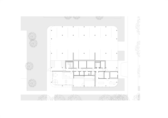 Bezoekers en voorbijgangers wordt dankzij de glaspartijen goed zicht geboden op de receptie en de lobby op de eerste verdieping. De twee niveaus worden verbonden door een brede trap, die tevens dienst kan doen als een kleine ‘collegezaal’ met uitzicht op de campus. Aan de tuinzijde van het pand bevindt zich op de verdieping het bedrijfsrestaurant met een eigen terras.