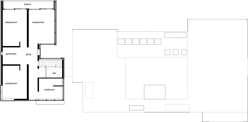 Met de uitbreiding heeft ONSIA architectuur in beeld een contrast gecreëerd. In ruimtelijke opbouw is juist een samenhang gezocht. Ook hier is de straatzijde zeer gesloten en opent het volume zich aan de andere zijde volledig naar de tuin.