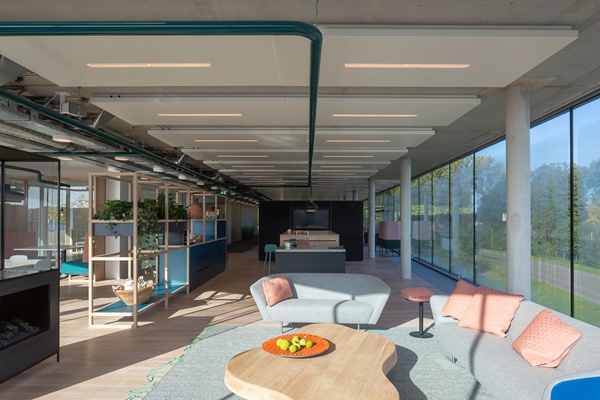 Het eenvoudige-maar-doeltreffende architectonische concept is binnen doorgezet in een zichtbaar gelaten betonnen casco. Dat de glazen gevels bijdragen aan de gezondheid van de werknemers behoeft hier verder geen betoog. Het dak is voorzien van mossedum, om water op te kunnen vangen. Ook is het dak uitgerust met PV-cellen, waardoor het gebouw net zoveel energie opwekt als het zelf gebruikt.