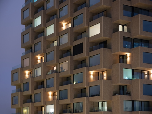 veel ontwikkelaars hebben ontmoedigd. Echter, in een land waar daglicht gedurende de helft van het jaar schaars is, zijn extra vierkante meters ramen en meerdere oriëntaties voor elk appartement een waardevol bezit, aldus de architecten.