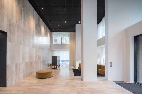 Het door archipelago ontworpen gebouw wordt omringd door groen, een conditie waarvan gebruik is gemaakt door veel uitzicht te creëren. Ook is op het maaiveld een colonnade gerealiseerd, die de overgang van binnen naar buiten verzacht.