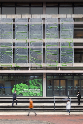 uit Londen en fungeert als zonwering en fotobioreactor tegelijk.