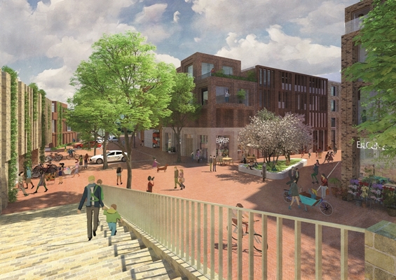 aan centrumfuncties en 450 woningen verdeeld over negen blokken. De circa 235 koopwoningen en 215 huurwoningen, waarvan 100 sociale huur en 115 vrije sector huurwoningen, liggen verspreid in de wijk.