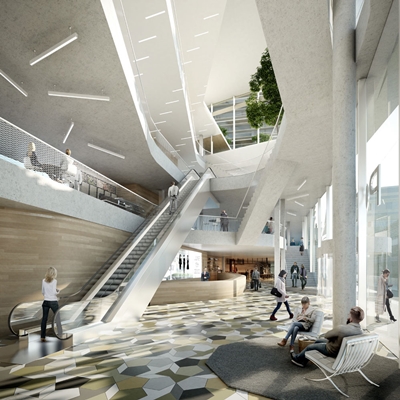“Een directe verbinding tussen het station en de begane grond van het gebouw biedt toegang tot een reeks van aantrekkelijke ruimtes – waar mensen elkaar kunnen ontmoeten, kunnen werken en kunnen relaxen”, aldus VenhoevenCS. Het gebouw moet zo nadrukkelijk onderdeel worden van de levendige binnenstad van Arnhem.