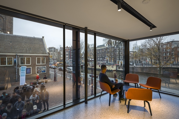 De museumwinkel, het museumcafé, kantoren en educatieve ruimtes zijn verplaatst en opnieuw ontworpen. De uitgang is verlegd naar de Prinsengracht.