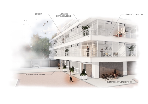 Door het vervangen van de Trespa-panelen door transparante puien en de appartementen te voorzien van een eigen loggia heeft de gevel zijn originele ‘open’ karakter weer teruggekregen. Hierdoor is niet alleen een prettige buitenruimte voor de bewoners, maar ook meer connectie met het omringende maaiveld ontstaan, met een betere sociale controle als gevolg. Een en ander is versterkt met een nieuw lichtplan onder de kraag en herinrichting van de buitenruimte.