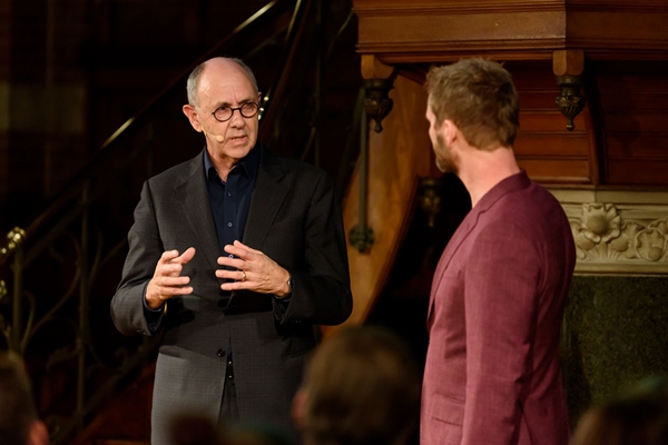 Moderator Léon van Geest in gesprek met Wytze Patijn
