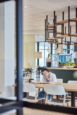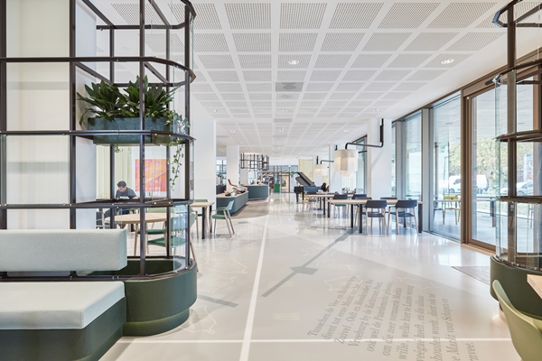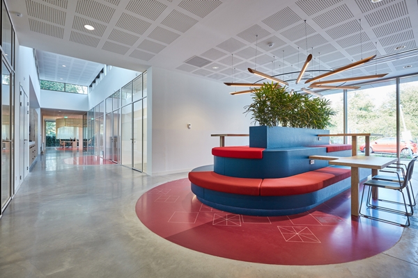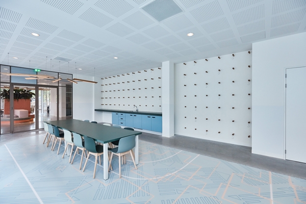 Vooral het ontwerp voor de werknemerszone er gericht op het optimaliseren van vernieuwing en diversiteit in de dagelijkse werkzaamheden. “De medewerkers van Zorghotel Domstate werken graag ‘net even anders’”, stelt het ontwerpbureau. “In deze zone mag buiten de lijntjes worden gekleurd.”