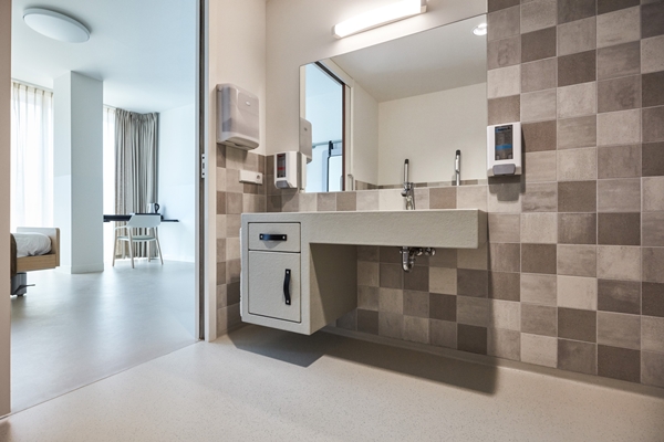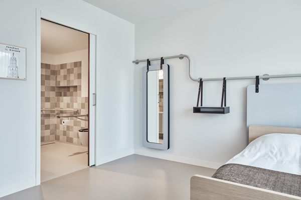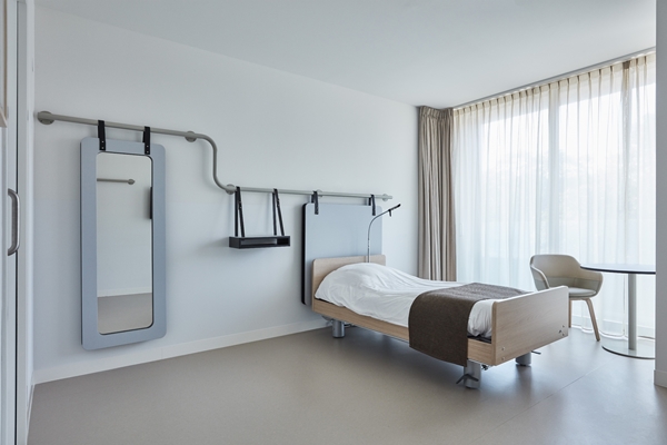 ‘Het is een hotel, tenzij…’ betekent dat de hotelsfeer van groot belang is. In de zones waar gasten verblijven, revalideren en hun vrienden en familie ontmoeten heeft Van Eijk & Van der Lubbe ruime aandacht besteed aan de faciliteiten die een viersterrenhotel moet bieden. Het gevoel welkom te zijn en in de watten gelegd te worden draagt bij aan het herstel, legt het ontwerpbureau uit.