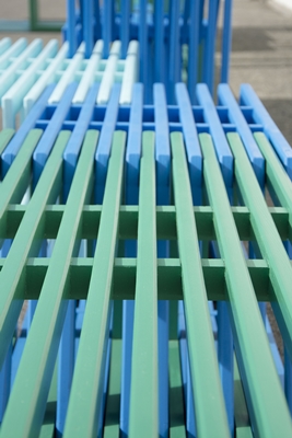 Intersections bestaat uit een serie geometrische, gekleurde elementen, die door hun lattenstructuur in elkaar kunnen schuiven. Op die manier zijn de elementen tot telkens andere installaties te combineren, die ook verschillende functies kunnen vervullen, zoals wachtmeubel of speeltoestel.