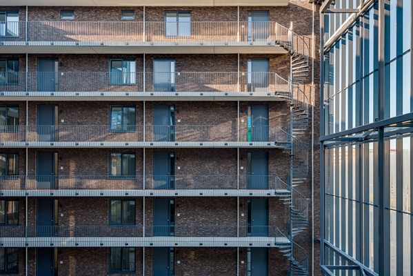 Lange balkons verbinden sociale woningbouw met omringend landschap