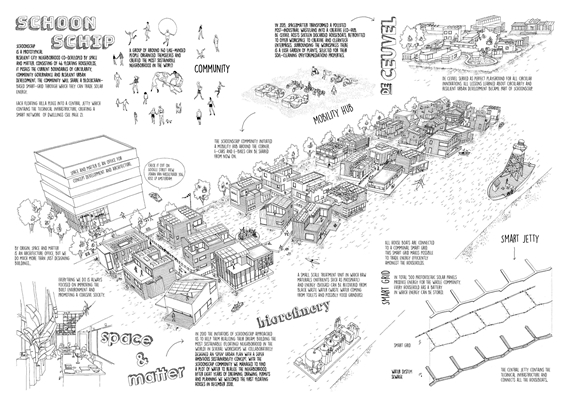 , een wijkje met zeventien woonarken op vervuilde grond (die is ingeplant met bodemreinigende plantensoorten)> Space & Matter ook bij dit project betrokken, samen met SmeeleArchitecture, Jeroen Apers, DELVA Landscape Architects en Studio Valkenier.