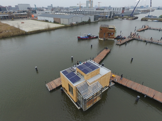 Afgelopen zaterdag zijn de eerste woningen van de duurzame drijvende wijk