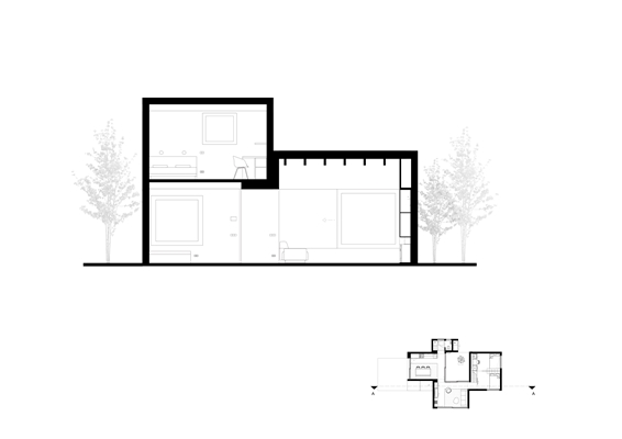Elke functie is ondergebracht in een ander volume; echter, door de open koppeling aan de binnenzijde ontstaat er een ruim leefgebied waarin alle functies in elkaar overgaan.