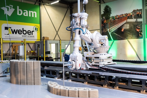 Dinsdag is in Eindhoven officieel de eerste Europese productielocatie voor driedimensionaal geprint beton geopend. Daar kunnen betonnen bouwelementen worden geprint, die kunnen worden gebruikt voor betonnen fietsbruggen of zelfs woningen.