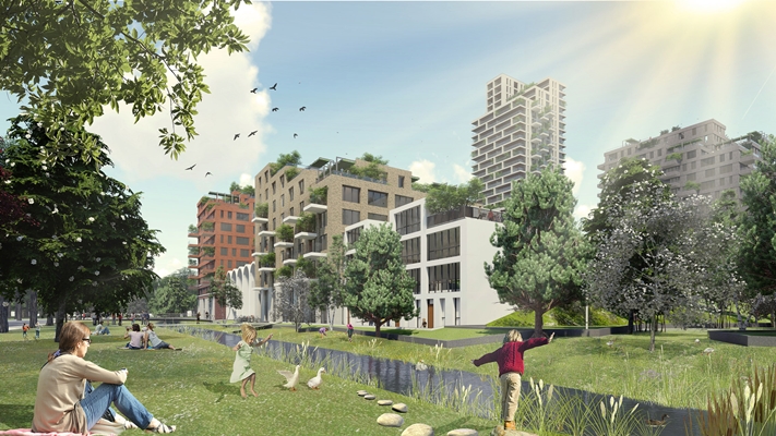 In de plinten komen sociale en commerciële voorzieningen. De openbare ruimte moet mede dankzij ‘natuurvriendelijke’ oevers een aantrekkelijk en ecologisch verblijfsgebied worden. Ook wordt in het gebied water opgevangen en vastgehouden en er komt een waterloop.