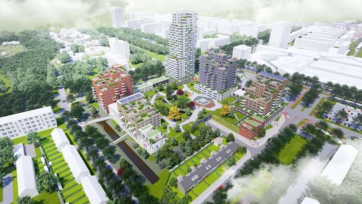 Het plan bestaat uit appartementenblokken met entrees in het groen, slanke woontoren met ruime terrassen als hoogteaccent in de hoek en een rand van stadswoningen met daarbinnen een verhoogde daktuin. Er is een divers aanbod aan woningen, in verschillende prijsklassen en zowel huur als koop, meldt KuiperCompagnons.